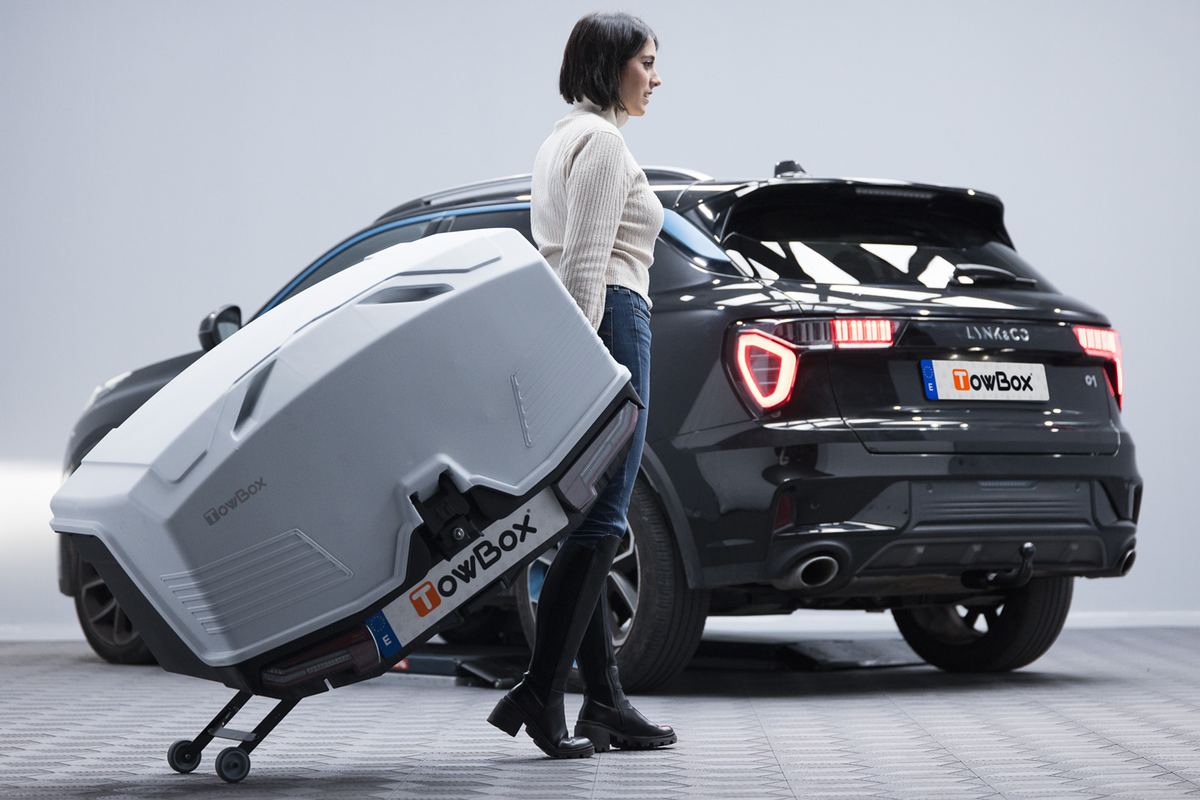 - TowBox Alpha Classic Grey este o cutie de marfă compactă, montată pe bara de remorcare, cu o capacitate de 330 de litri și o capacitate de încărcare de până la 58 kg. Ușoară, durabilă și ușor de asamblat fără unelte, dispune de iluminare LED, sistem de în