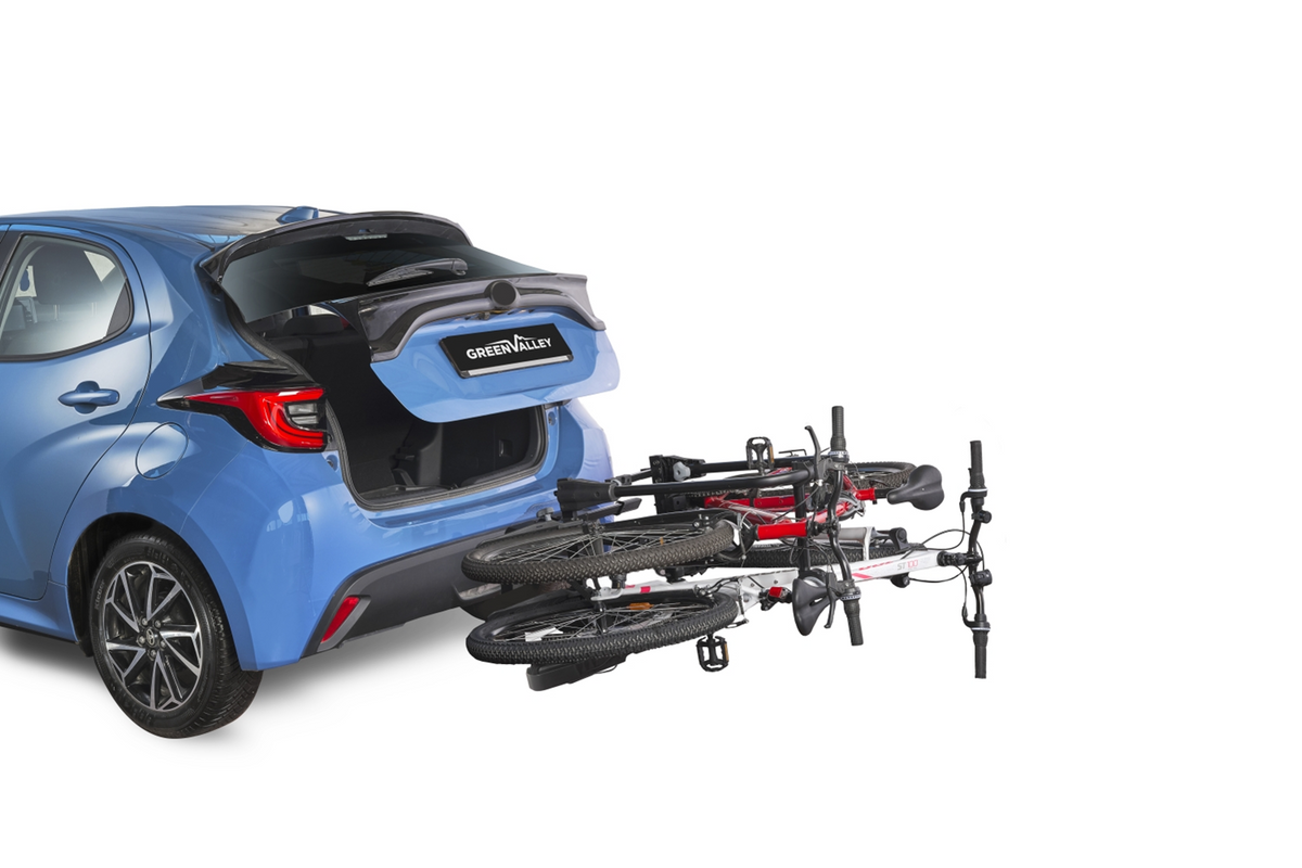 - Green Discovery 2 este un suport de biciclete din oțel, montat pe bara de remorcare, cu funcție de înclinare pentru accesul la portbagaj. Designul său pliabil facilitează depozitarea, în timp ce instalarea rapidă și sistemul de blocare antifurt asigură o