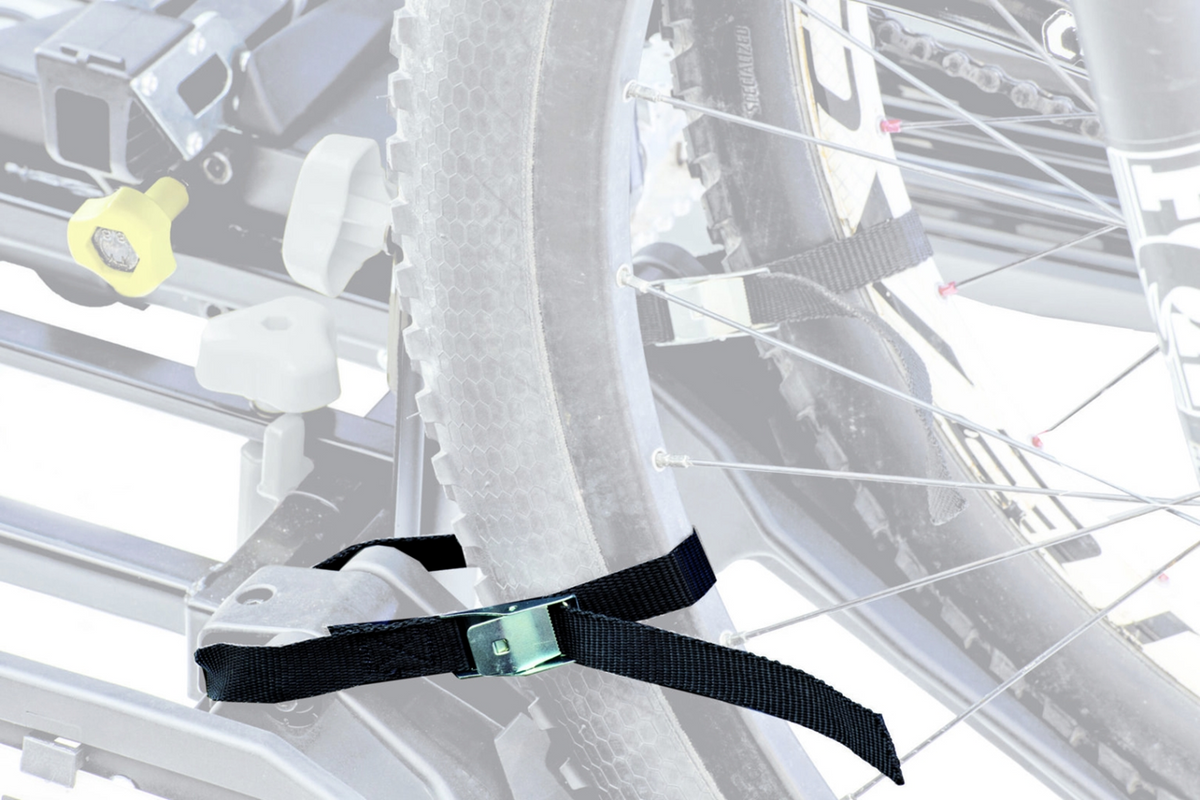 Roțile bicicletei sunt stabilizate pe suporturi robuste , care pot fi ușor ajustate la dimensiunea bicicletei transportate. Acestea sunt fixate cu ajutorul unor curele textile durabile, cu un sistem de blocare , asigurând fixarea sigură a roților în timpul mersului. Suporturile permit instalarea roților cu anvelope de până la 2,8 inci lățime , făcând platforma compatibilă și cu bicicletele cu anvelope mai late.
