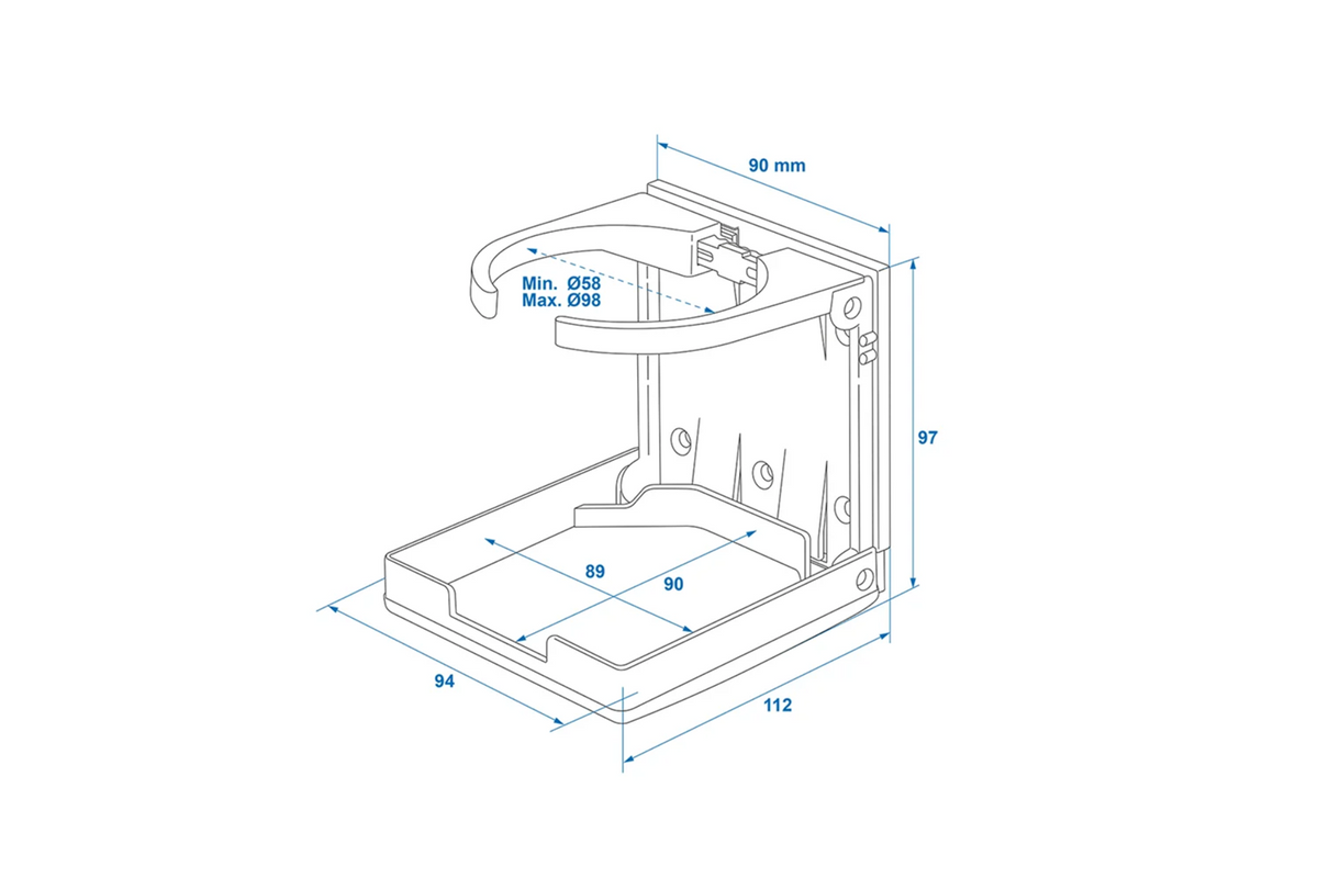 Cu o clemă reglabilă cu o distanță cuprinsă între 58 și 98 mm, suportul susține în siguranță pahare, doze și sticle de diferite dimensiuni . Construcția este realizată dintr -o combinație de plastic ABS durabil și oțel, asigurând durabilitate și rezistență la utilizarea zilnică în timpul călătoriilor.