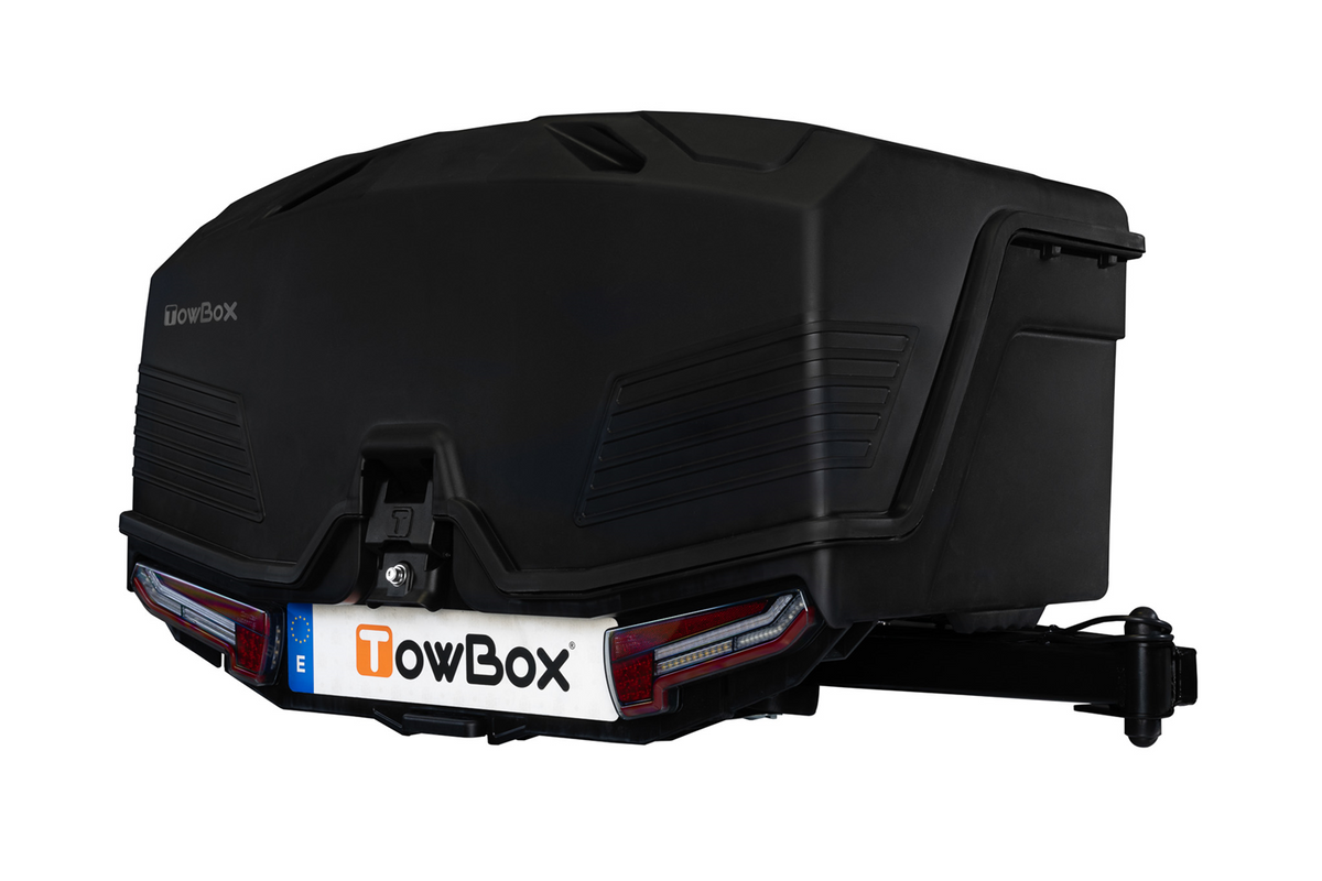 Rulota TowBox oferă o aerodinamică și o eficiență energetică îmbunătățite în comparație cu cutiile de plafon montate în spate. Produsul este livrat parțial asamblat în două cutii.