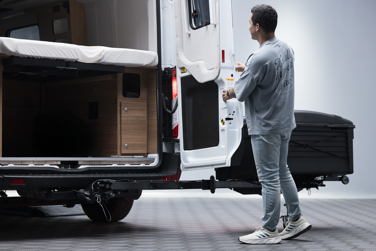 TowBox Camper este un suport conceput special pentru autoutilitare, autobuze și rulote. Se montează pe bara de remorcare. Permite deschiderea convenabilă a ușilor din spate și a hayonului fără a fi nevoie să scoateți cutia , oferind în același timp până la 330 de litri de spațiu suplimentar pentru bagaje, rezolvând eficient problema constrângerilor de spațiu din vehicul. Iluminarea LED integrată cu semnalizatoare dinamice completează, de asemenea, vehiculele moderne.